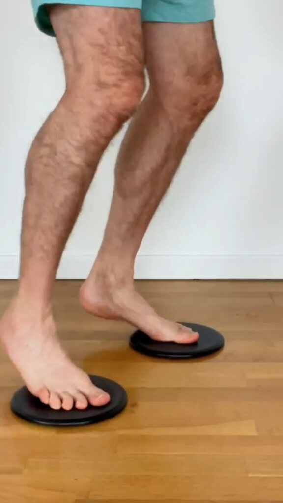 Travail de pivot sur slider ou serviette pour stabiliser la cheville dans les pivots et diminuer le risque d’entorse