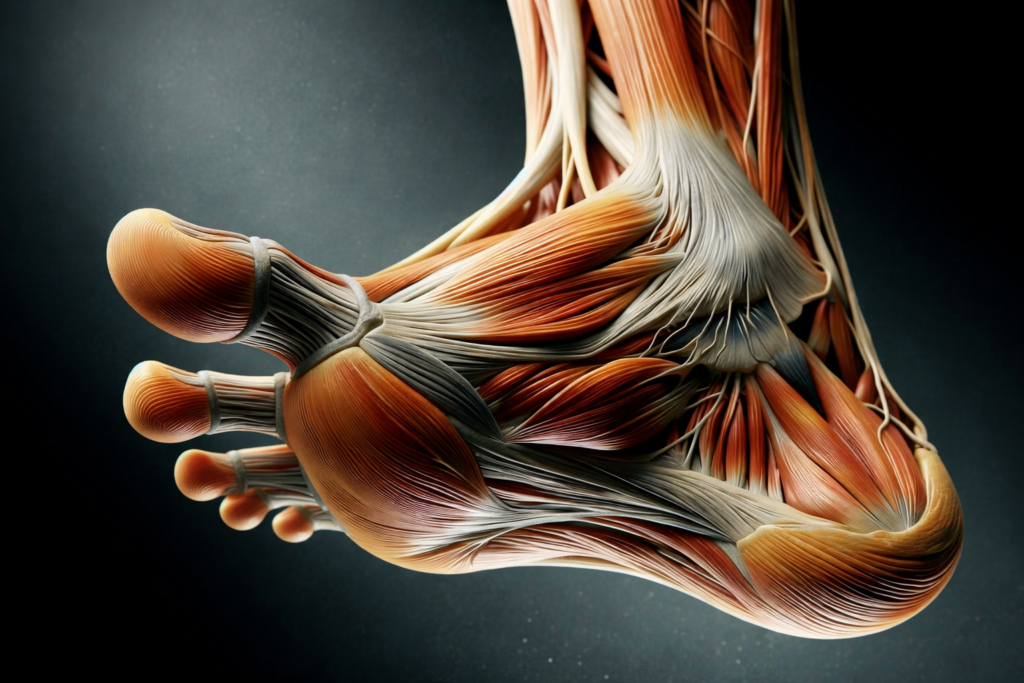 Le pied comprend une vingtaine de muscles intrinsèques, minuscules et souvent méconnus. Ce sont eux qui empêchent l’effondrement de la voûte plantaire et permettent de tenir immobile sans osciller.